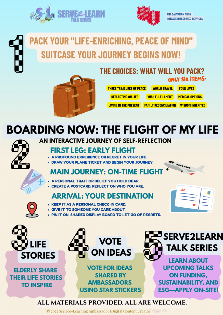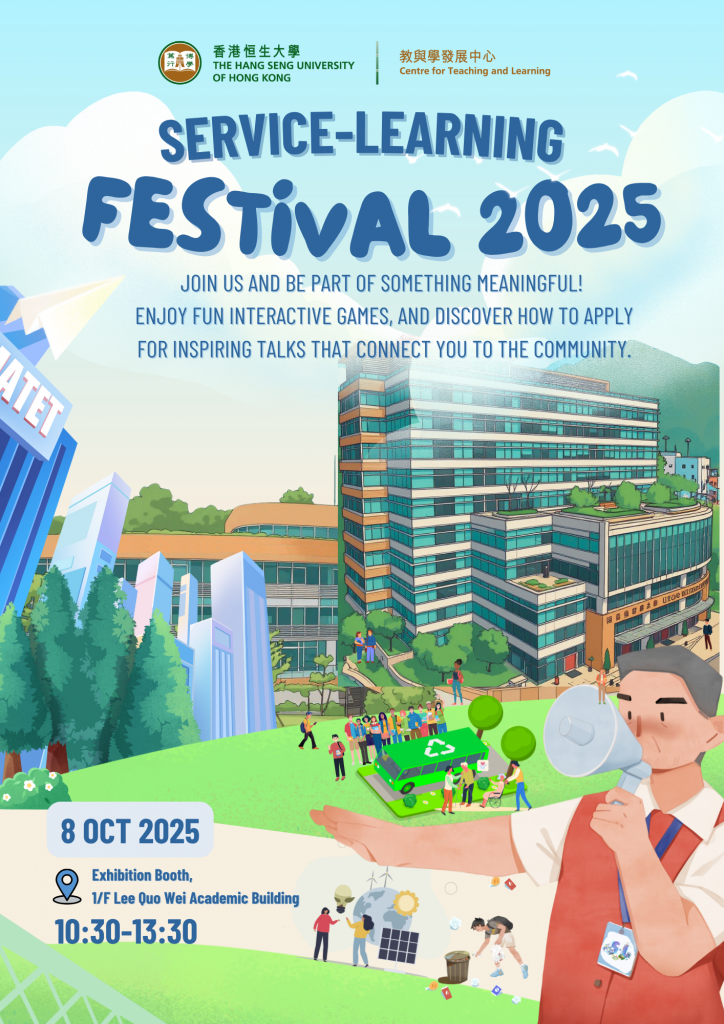 Organised by the Service-Learning Section of the Centre for Teaching and Learning, supported by The Salvation Army InnoAge Integrated Services, the Service-Learning Festival will take place on 8 Oct 2025.